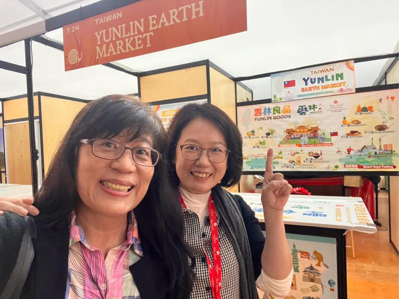 南華大學USR計畫協助雲林良品走向世界,南華大學USR葉月嬌執行長(右)與花蓮野菜學校的創辦人吳雪月(左)分享雲林國際慢食之成果。