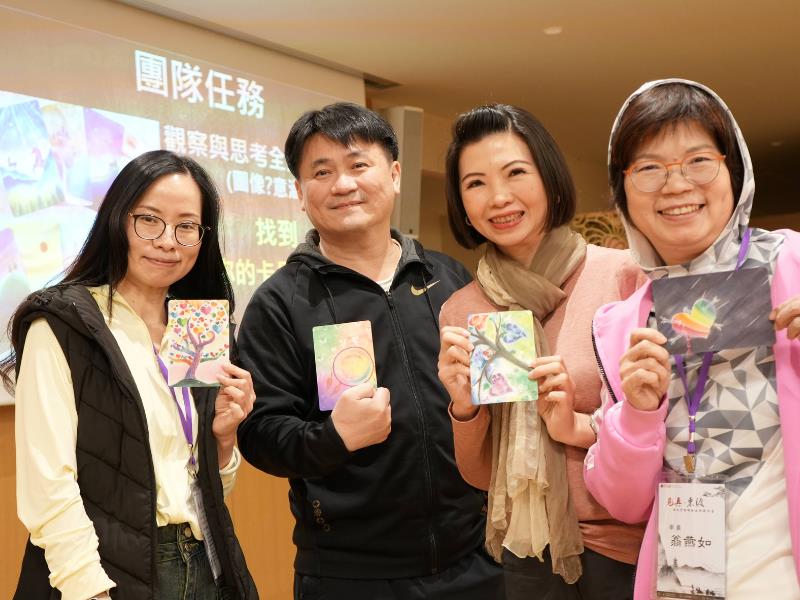 南華大學舉辦【見真東渡】禪式管理領袖生命提升營,百納康健翁燕如董事長(右一)卡訊電子吳珮蓉董事長(右二)光宇工程顧問劉家昆總經理、國際佛光會督導韓孟霏等企業菁英領袖一同參與學習。