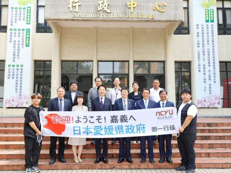嘉義大學今(19)日上午與日本愛媛縣政府舉行盛大簽約儀式,由林翰謙校長與日本愛媛縣知事中村時?(Nakamura Tokihiro)於蘭潭校區正式簽署友好合作備忘錄,開啟臺日學術交流新篇章。日本愛媛縣由知事中村時?、愛媛縣議會議長三宅浩正(Miyake Hiromasa)及愛媛縣?光????文化部長久保田晶(Kubota Aki)等13位貴賓出席;嘉大由林翰謙校長、張俊賢副校長、陳瑞祥副校長、唐榮昌學務長、楊正誠國際長及謝佳雯處長等師長與會,此次合作不僅深化雙方友誼,更以傳奇「KANO棒球隊」為橋樑,將臺日情誼推向高峰。
