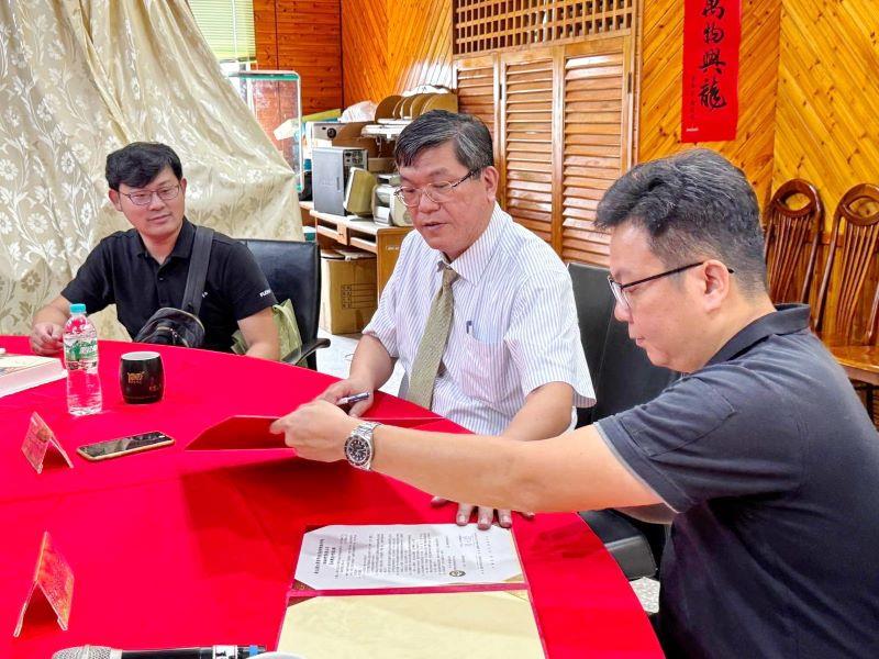 圖1:木設系李安勝主任(中)與互若亞股份有限公司周提總經理(左)、福樟實業有限公司張元耀總經理(右)簽署產學合作備忘錄