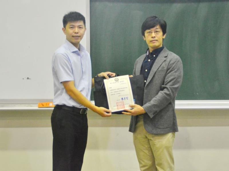 圖4:嘉大資管系李彥賢主任(右)致贈信賴眼科診所感謝狀由陳郁翔部長(左)代表接受