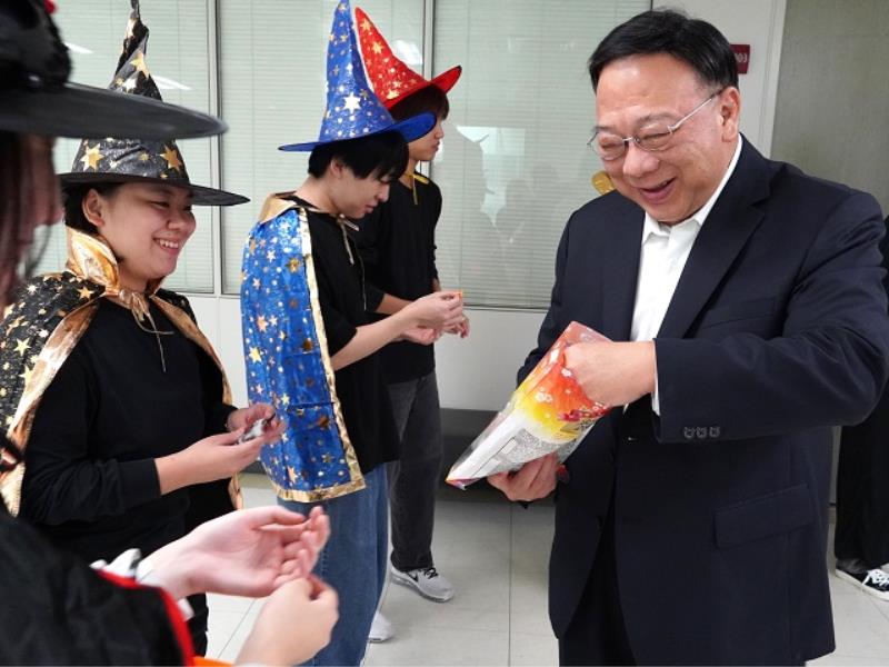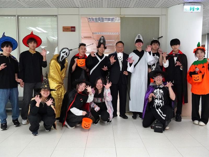 中華大學副校長兼國際長解鴻年,身著一襲披風手拄拐杖融入學生。他表示,萬聖節是由凱爾特人(Celtic)的「薩溫節」演變而來,經過兩千年來的演變,已從原先的驅鬼儀式,變成街坊鄰里發揮創意、展現自我的節日。華大積極辦理多元節慶活動,一方面讓學生們感受不同國情的文化,二方面是藉此凝聚師生感情,也特別叮嚀國際生,要以正能量的態度培養好的身心靈,成為五育並進的人才。