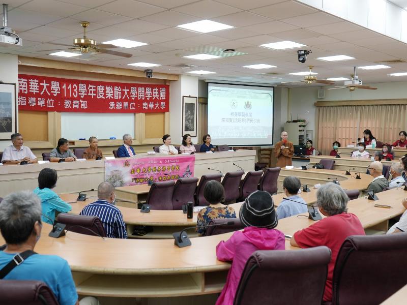 高齡化的時代變遷,南華大學終身學習學院本著身心靈的全民生命關懷,為實現銀髮族健康快樂,自主學習的願景,以多元創新的學習課程規劃,讓樂齡長者們能夠進入美麗綠色永續的南華大學校園,參加由終身學習學院所辦理的樂齡大學就讀,以提供學員們能夠共享豐富的教學資源,一圓大學夢,也得以讓南華大學終身學習學院的「終身學習,幸福終生」目標達成。該校樂齡大學從99年開始辦理迄今,已邁入14個年頭,今年於10月16日舉行「113學年度樂齡大學開學典禮」,正式展開新學期的開始。