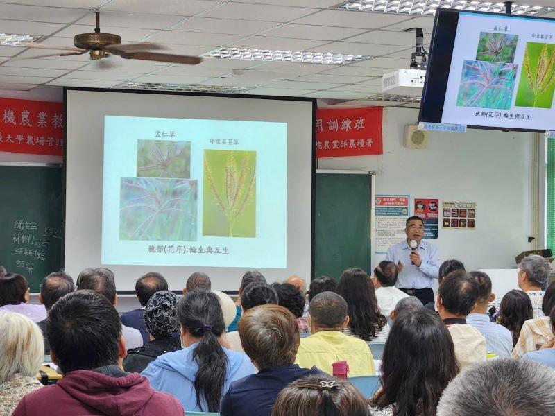 圖2:侯金日主任講授有機農田與休耕田雜草多樣化利用概說
