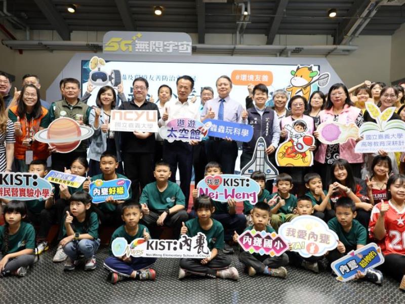 嘉大陳瑞祥副校長特別提到,嘉義大學由嘉義師範學院及嘉義技術學院兩校整合而成,嘉義技術學院前身嘉義農林學校創立於民國8年,就一直有農業相關科系,很開心能與嘉義縣政府太空教育館合作,有機會彰顯在地大學師生學於斯、用於斯的研究專長,落實大學社會責任。