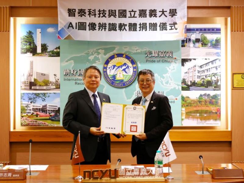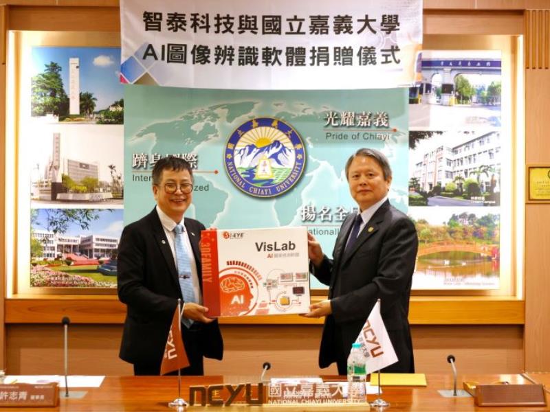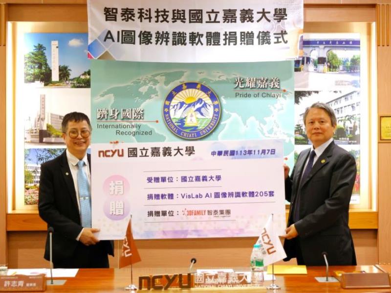 因應AI時代來臨,為強化學生AI實力,智泰科技股份有限公司許志青董事長捐贈205套「AI圖像辨識軟體VisLab」予嘉義大學,總價值超過新臺幣八千萬元,11月7日於嘉大蘭潭校區行政中心舉行AI圖像辨識軟體捐贈儀式,由陳瑞祥副校長接受並代表贈予感謝狀。
