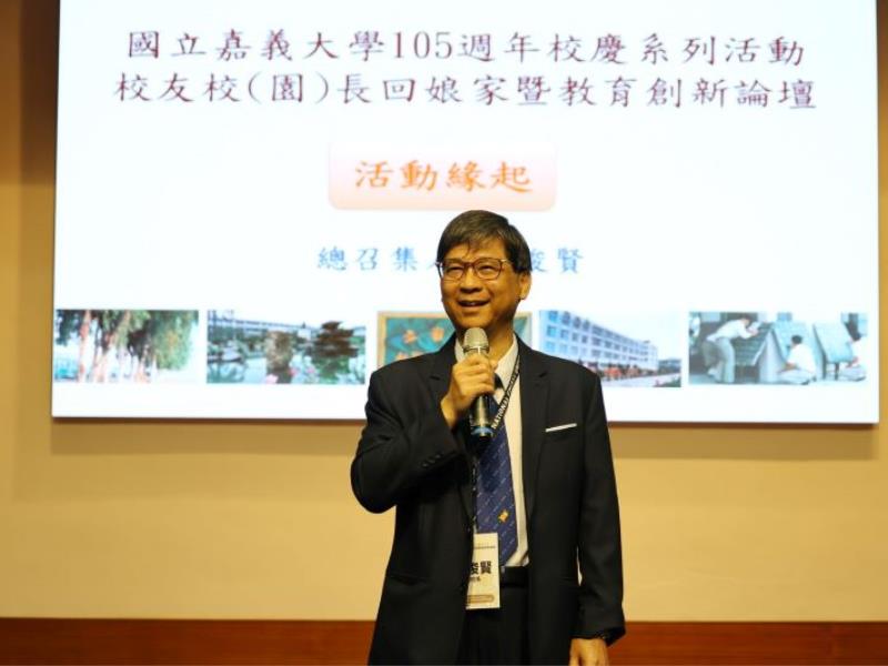 嘉義大學由原國立嘉義師範學院及原國立嘉義技術學院兩校整合而成,具有悠久的師資培育歷史,歷屆校友在各教育階段及教育行政機關都有傑出的表現。為讓學校優良師資培育精神能持續傳承,時逢嘉大105週年校慶之際,11月22日舉辦「校友校(園)長回娘家」,聯繫校友與母校間之情感,同時邀集校友校(園)長專業分享其創新辦學經驗,促進學校教育發展。