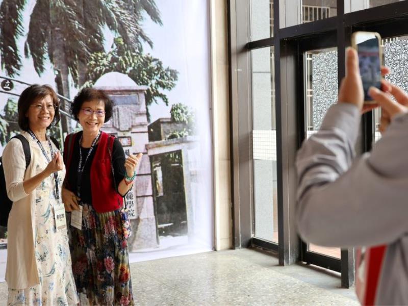 圖6:嘉大校友於嘉師時期校門團拍牆前合影