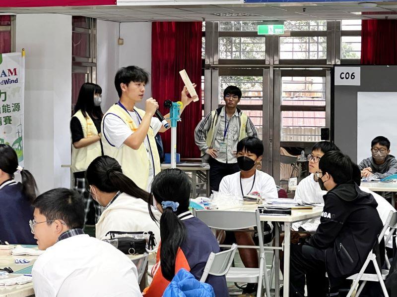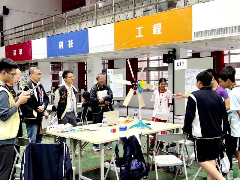蘇炯武教授近年執行USR計畫,深耕地方教育,更透過嘉大高教深耕計畫-智慧能源永續學程子計畫結合綠能議題,共同催生了本次嘉義地區的綠能科學教育競賽。蘇教授提及本次競賽活動之促生,是結合國內亞太能源科學教育協會推動國際賽事(KidWind風力能源亞洲聯賽),融入STEAM+教育概念的科學競賽。競賽的內容除了電能效率量測外,亦包含創意應用發表。其中電能效率量測是各組須在風洞前架設風機,有改進實作風力扇葉作品之2次機會,記錄下30秒產生最佳電能之數據,計分板同步顯示各隊結果,即時掌握前後狀況,賽事十分刺激。創意應用發表則參考芬蘭STEAM七階段學習任務作法,給予創意主題進行智慧綠能城市未來的想像,最後透過繪製海報及口說發表及評審的問答環節進行綜合評分。