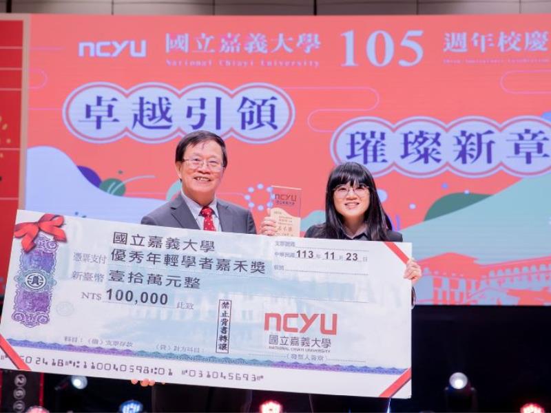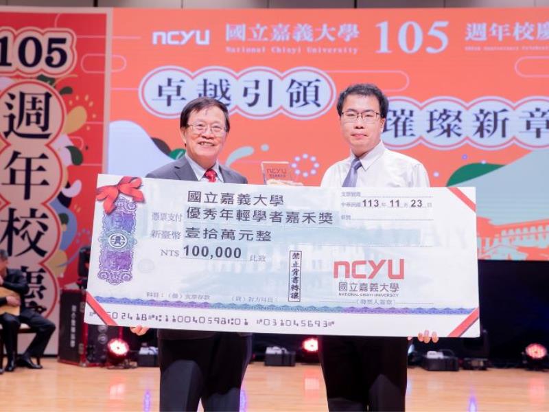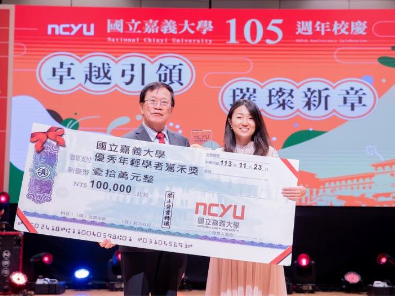 林翰謙校長表示,「優秀年輕學者嘉禾獎」象徵嘉大在推動學術研究方面邁出重要一步,此獎項不僅期望發掘具潛力的學術新星,更希望透過鼓勵研究創新,為學校科研發展注入新動力。嘉禾獎每年頒發至多6名,得獎人均可獲得10萬元獎金及嘉禾獎座。年輕教師是嘉大的寶貴學術資產,期望更多優秀學者加入嘉大團隊,研究發展處將持續精進及優化獎項機制,納入卓越學術貢獻教師獎勵機制,共同提升學校的學術影響力。
