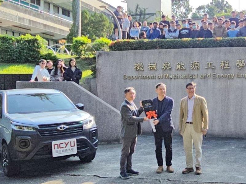 贈車儀式由嘉大機械系系主任林肇民特聘教授與中華汽車車輛測試部張秀鴻部長共同主持,車輛測試研究中心(ARTC)朱陳興董事也特別率團撥冗觀禮,產學研三方共同參與此次盛會,為國內車輛工程領域產學研三方合作開啟新的一頁。藉由此次合作,也印證嘉大在兼顧學術與技術研究及教學並重的理念引導下,已成為國內優秀的綜合大學之一。嘉大將本著研究創新與教學並重的方向持續發展,整合產學研三方為我國機械與能源相關工程領域開創新局。