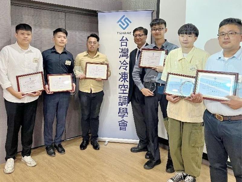 圖4:嘉大機械系張烔堡特聘教授(中)指導學生專題研究獲得台灣冷凍空調學會「大學專題獎」與「工程論文獎」