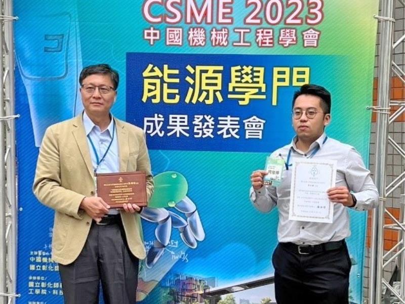 圖5:嘉大機械系張烔堡特聘教授(左)指導學生周俊輝榮獲國科會能源學門「大專生創作獎」