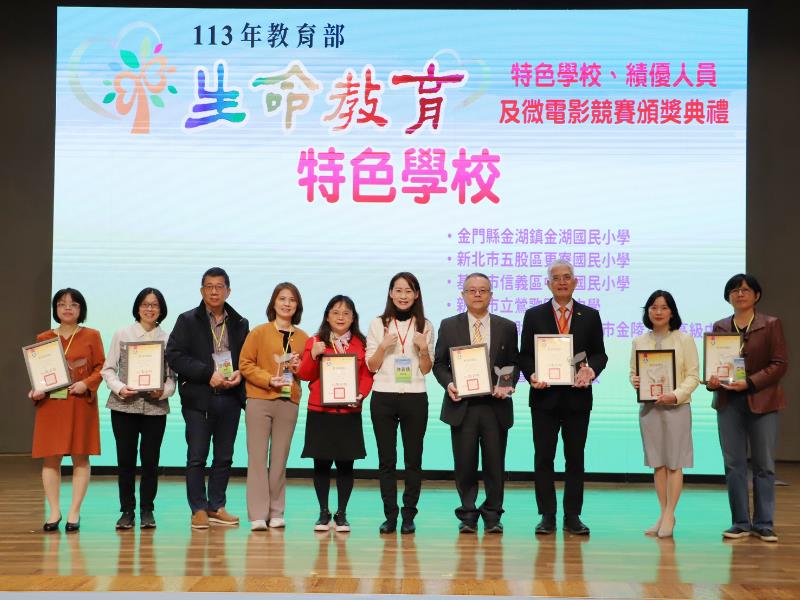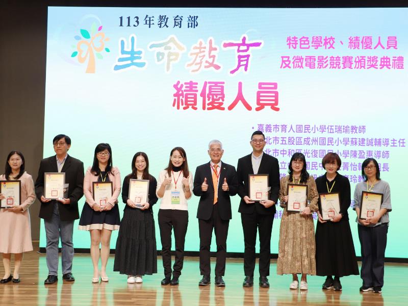 教育部舉辦生命教育頒獎典禮,表揚8位績優人員。