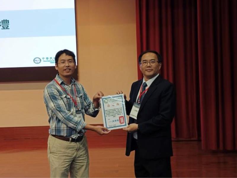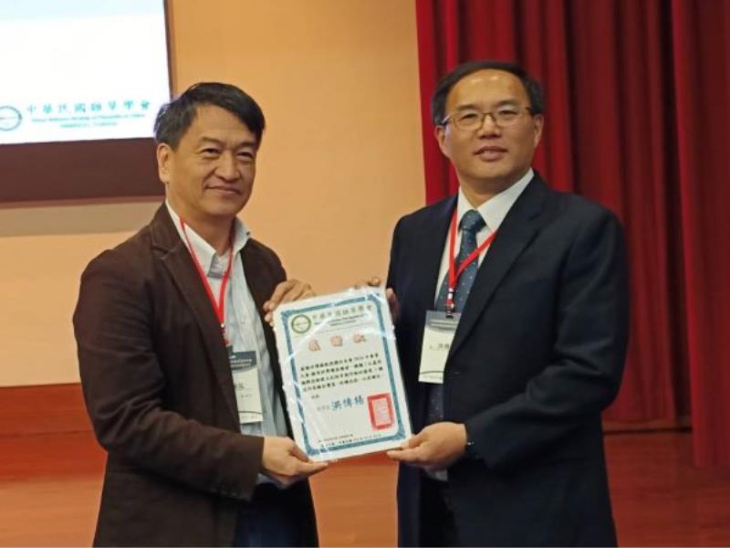 圖3:顏瑞泓榮譽理事長(左)頒發感謝狀予臺大農化系洪傳揚教授