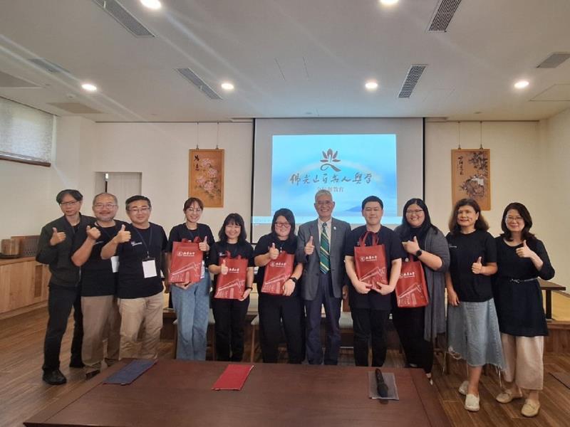南華大學展開台泰跨文化合作工作坊,高俊雄校長(右5)與工作坊講師群合影。