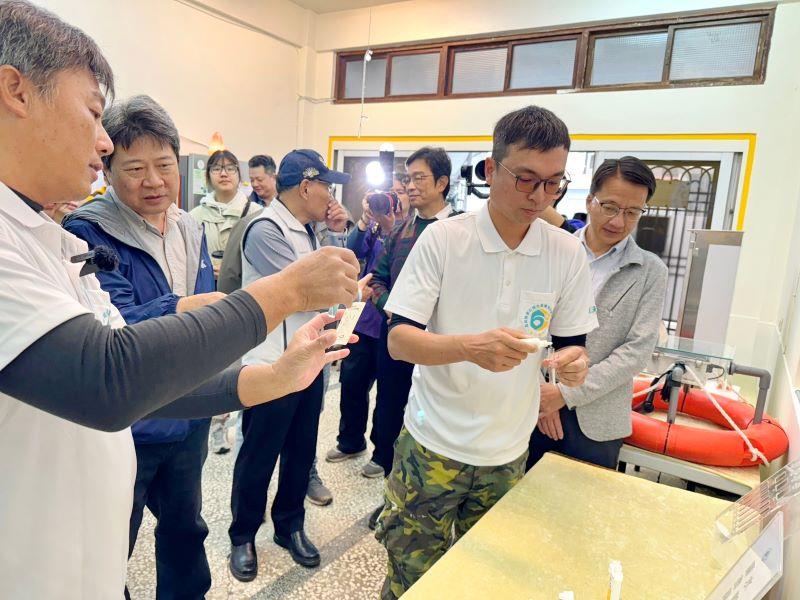 嘉義大學水生生物科學系協助嘉義縣政府推動科技養殖,113年輔導「東石鄉水產養殖第六產銷班」建置智慧管理系統,成立縣內第五處智慧漁業標竿示範場域。12月27日該產銷班舉辦成果發表觀摩會,嘉義縣政府農業處許彰敏處長、嘉大生命科學院賴弘智院長、東石鄉林俊雄鄉長、縣議員姜梅紅及水試所林峰佑研究員等貴賓、30多名漁民以及嘉大師生等出席觀摩。