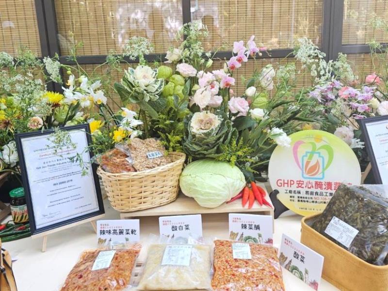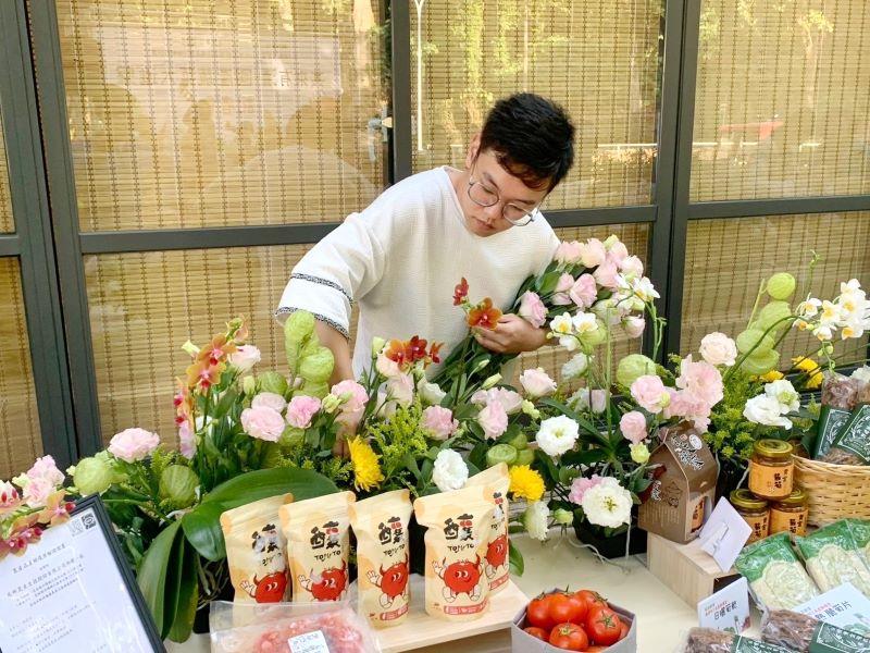圖9:嘉大園藝系袁仕華同學於農業部農糧署「其來有漬-國產蔬菜大進擊」記者會的花藝布置作品