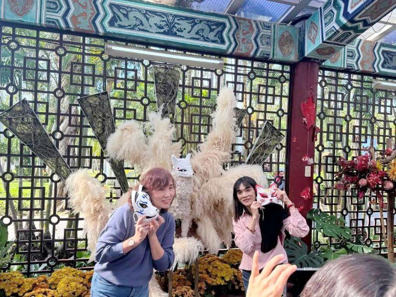 圖7:參觀民眾於2024士林官邸菊展「東方動物園」布展作品前合影
