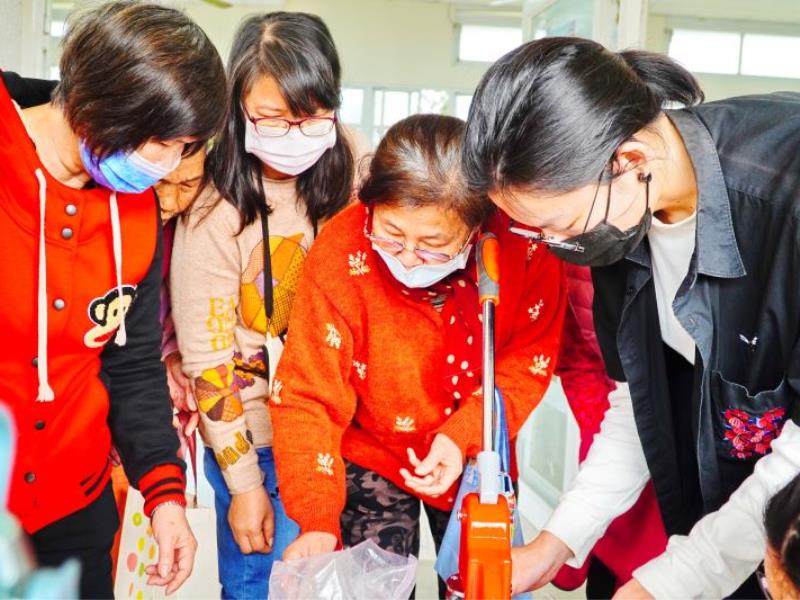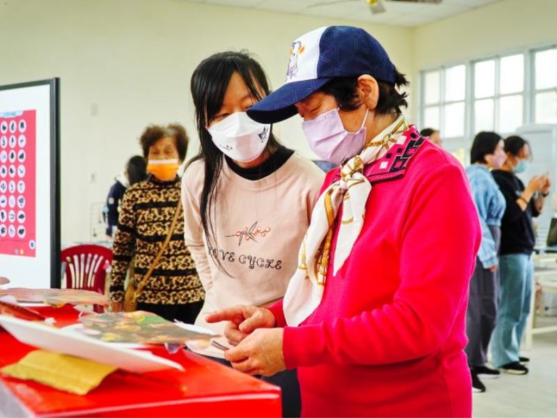 圖4:嘉大學生帶領好美里居民製作在地文創徽章