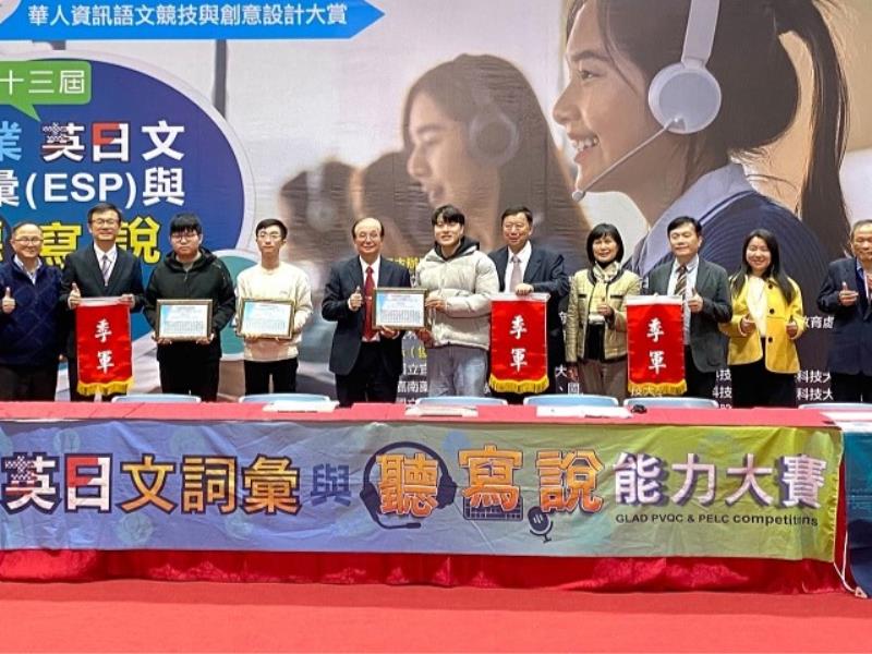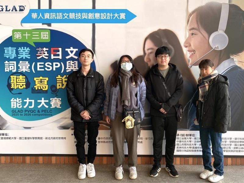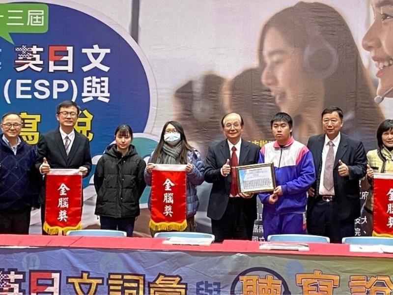 應日系3位同學參加的「日文單詞組」是通過多項中日文來回聽取比對競爭其正確率,特別考驗學生的日文熟悉的反應速度。獲得銅獎的潘映菘同學表示,這次很榮幸能夠代表學校參加全國賽,有了本次的經驗,相信下一次能有更好的成績;同樣喜獲銅獎的涂鈞傑同學表示,起初因為對日本文化有興趣,才選擇精進日文,期盼有朝一日能到日本求職。有了這次獲獎的成績,相信距離目標不遠;獲得金腦獎(佳作)的黃育穗同學則提及,在備賽過程給予大力支持與指導的老師,在比賽中受益良多,也有了繼續學習及進步的動力。
