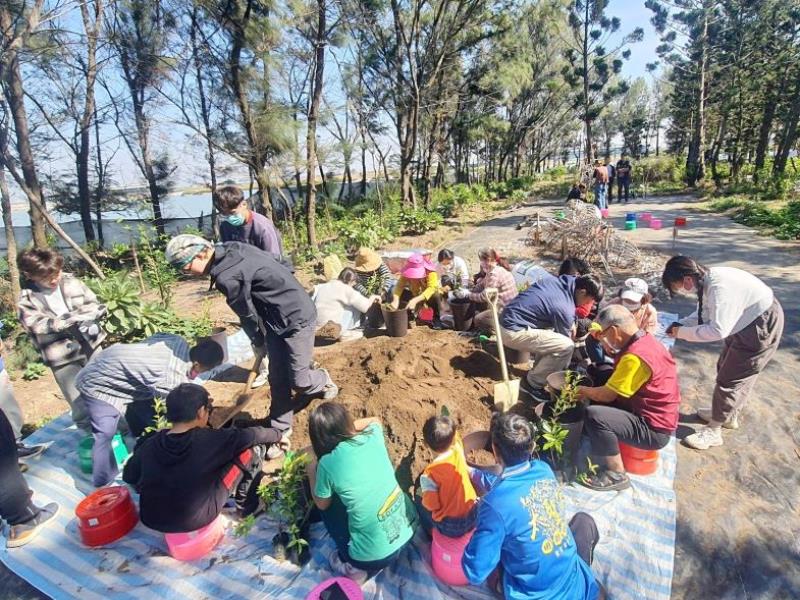 當日由該計畫執行長師範學院陳明聰院長、農學院森林系何坤益教授率領計畫團隊,並邀請多位社區內合作夥伴參與,包括蔡信典縣議員、社區發展協會蔡信得理事長及太聖宮秦榮福常務委員等,共同為社區注入綠意與新春活力。社區內有近五十戶里民受惠,成功的推動村里綠美化和社區凝聚力。