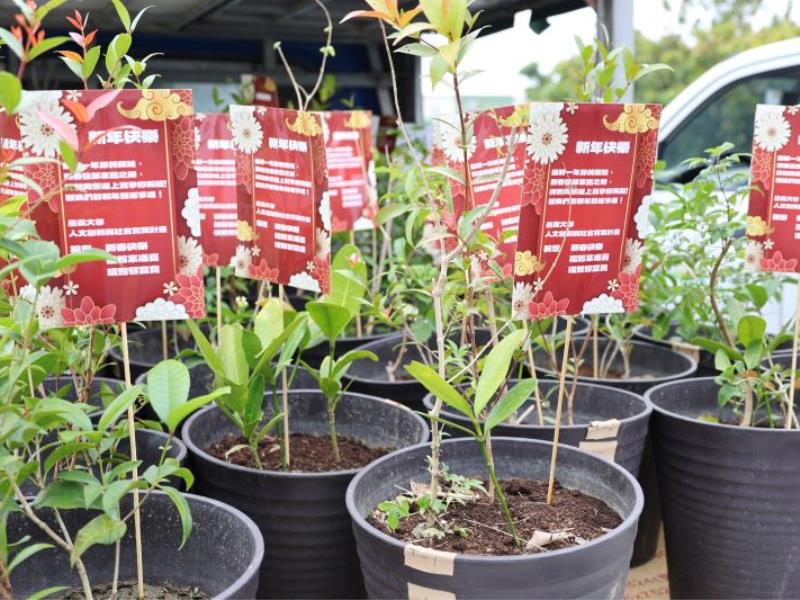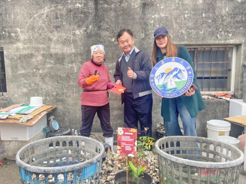 下週即將迎接農曆新年,嘉義大學國科會人文創新與社會實踐計畫辦公室與布袋鎮好美里蘇元勳里長今(23)日辦理「好美綠天地 福貴至家 富貴之家」活動,將社區里民去年12月2日所親手種植的綠美化盆栽,經嘉大森林系師生多日養護,年節前計畫團隊帶著充滿祝福的盆栽及賀歲方斗春聯到里民家中,祝福好美里的居民「新春福瑞送吉祥,金蛇進家富滿堂」。
