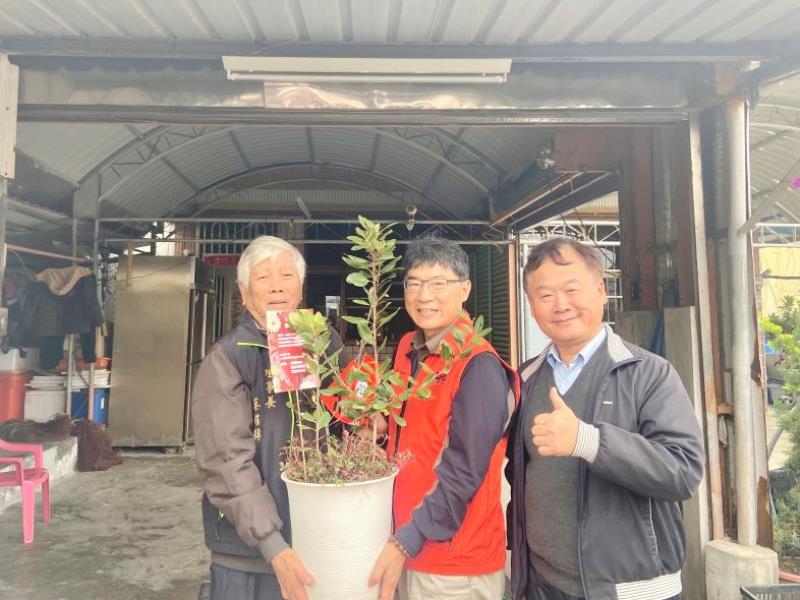 圖7:嘉大森林系何坤益教授(中)致贈盆栽及紅包袋予好美里居民