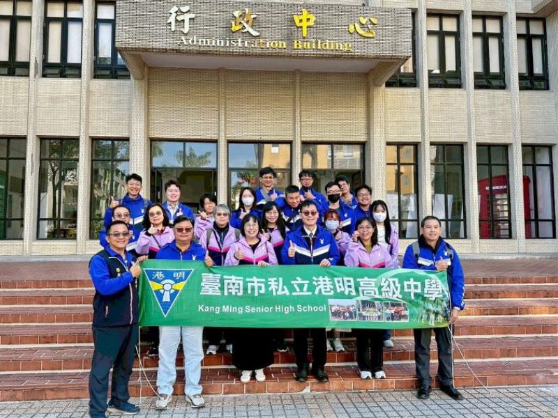圖1:嘉義大學楊正誠國際長(左三)代表林翰謙校長致贈代表兩校友誼交流的校慶賀禮