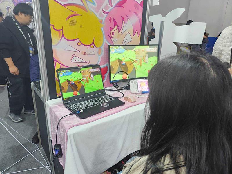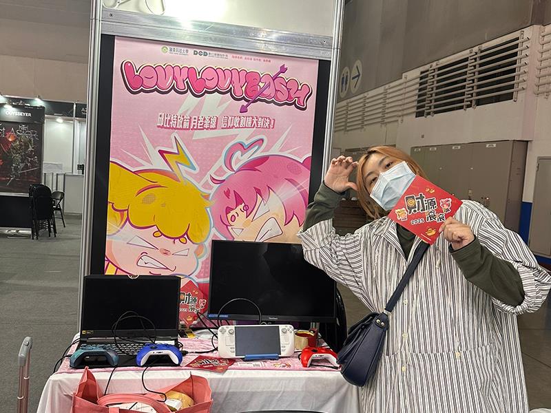 嶺東科技大學數位媒體設計系學生首度自主參展,展出獨立製作的 3D 雙人競技遊戲《LoveyLoveyBash》,其成熟的遊戲設計和精緻的畫面表現,吸引了眾多遊戲玩家駐足參觀。《LoveyLoveyBash》3D 雙人競技遊戲由大四吳彥儀同學獨立開發製作完成,遊戲巧妙融合西方邱比特與東方月老的文化元素,並結合經典貪吃蛇玩法,展現出豐沛的創意和紮實的程式開發能力。吳彥儀同學表示,因為是就讀普通高中,之前完全沒有視覺設計與3D美術的基礎,在高中時也完全未接觸過程式設計,今天能在台北電玩展會場展出其遊戲作品,是就讀普通高中的她從未想過的事情。