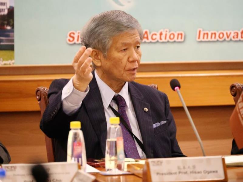 小川校長致詞表示,兩校具有許多共同點,目前也都面臨少子女化、產業與高等教育發展轉型的挑戰與契機,他企盼兩校間能夠加強互動,透過實質的研究計畫及論壇合作、學生實習與交換等計畫,逐步強化夥伴關係,共同拓展發展空間。