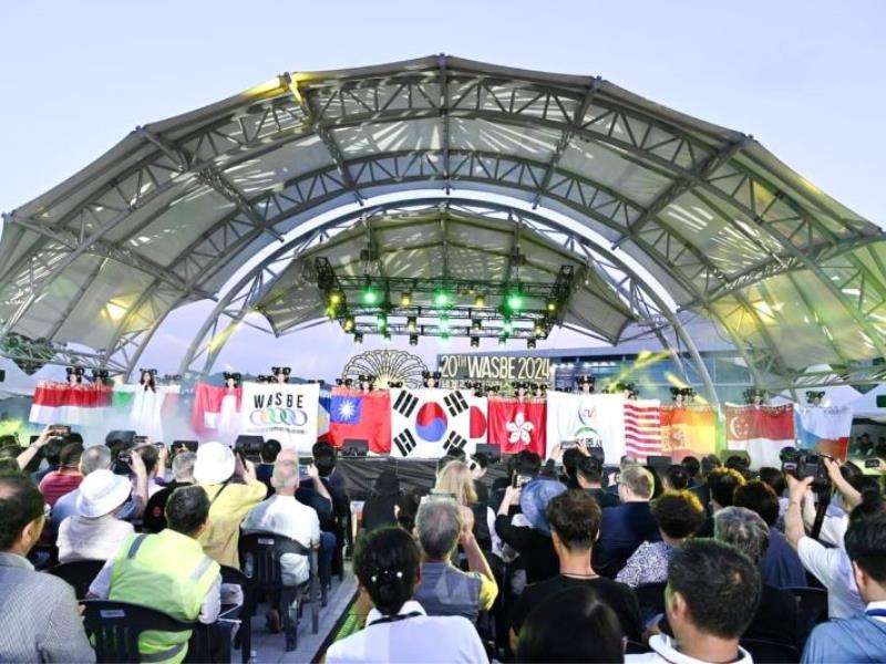 圖5:音樂學系師生受邀參加第20屆國際世界管樂年會,中華民國國旗與各參與國家一起飄揚。