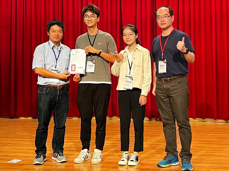 電子物理學系蘇炯武教授指導碩士班李詠瀚同學及雙主修學士班賴誼珮同學,共同發表「應用Arduino開發製作推廣教具-茶乳現象(Tea Creaming)的臨界光學性質與茶葉品質關聯性的探討」現象研究,榮獲2023年物理教育聯合會議研究生及教師組壁報論文發表第一名。