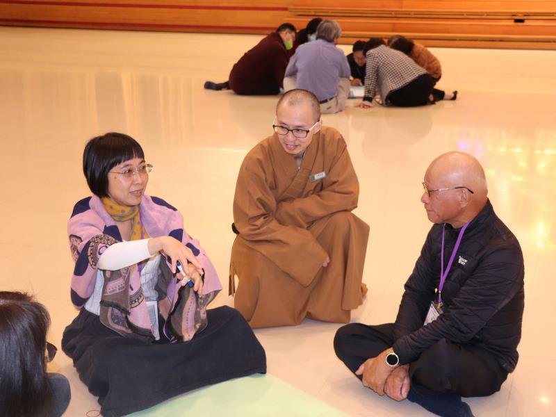 南華大學終身學院辦理「生死教育種子師資國際證照班」,釋知賢教授於課程中引導學員認識更深層自我,學習用不同視角看世界。