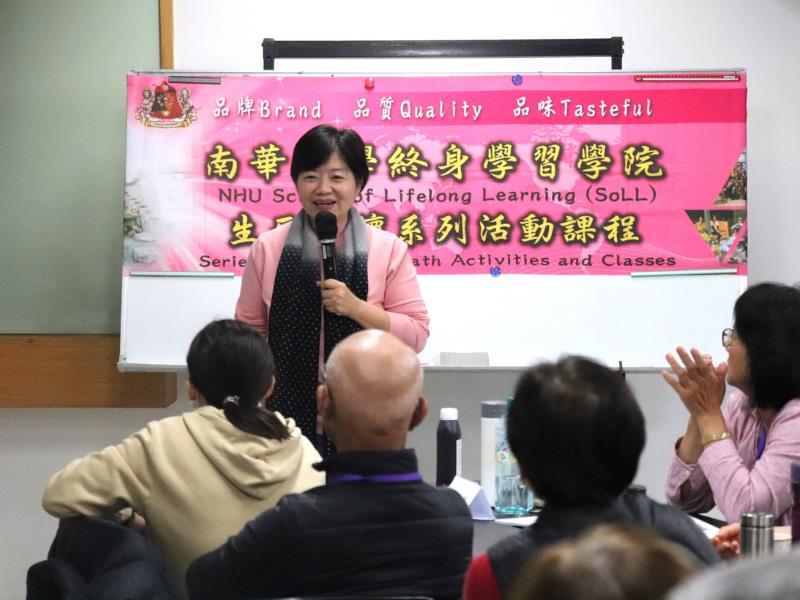 南華大學終身學院辦理「生死教育種子師資國際證照班」,郭慧娟老師提倡從遊戲輕鬆學習生死大事,於課堂中以故事生動有趣引發學員共鳴。