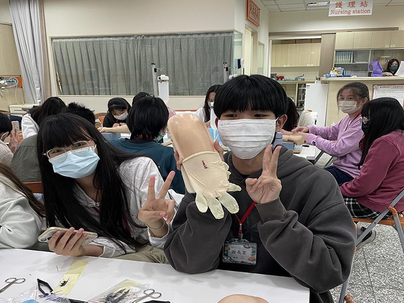 亞大護理學院長吳樺姍表示,此次營隊以創傷急救為主題,規劃專業實境體驗,讓學員深入學習醫護技能。除有講解解剖學概論,幫助大家掌握骨骼名稱與排列方式;接著在實作競賽中,讓學員們團隊合作,拼湊人體骨骼。更讓學員們體驗手術實境訓練,穿上標準無菌手術衣,學習刷手消毒及穿戴技巧,互相協助完成無菌穿衣流程,確保整個過程符合醫療標準,體會醫護人員在執行手術時對細節的極致要求。更指導學員體驗創傷傷口縫合情境,學習傷口縫合的基本知識,包括:創傷種類、縫合技術、傷口處理流程,並使用縫合器械模擬真實的傷口處理。參與的學員們說:「第一次直接接觸人體骨骼,有挑戰性又充滿趣味!」「這次參加營隊是超特別的體驗,剛開始有點緊張,但完成後很有成就感!」