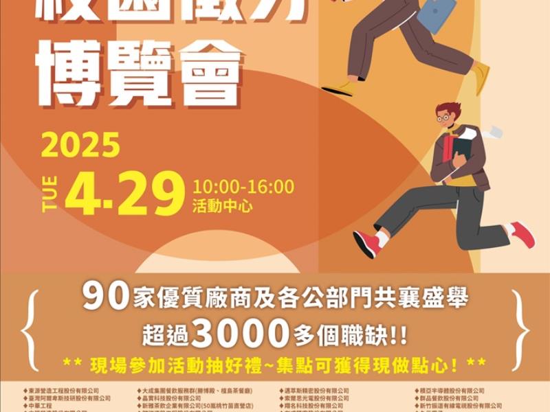 校方感謝勞動部勞動力發展署桃竹苗分署、新竹市政府勞工青年處、新竹就業中心及各企業代表的熱情參與和支持。今年報名廠商踴躍,有超過上百家廠商爭取到學校設攤,但因場地關係,學校精選出多家合法、安全、有保障的優質企業參與徵才活動,誠摯邀請青年學子把握良機,勇敢踏出求職第一步,為未來職涯打造最強起點!