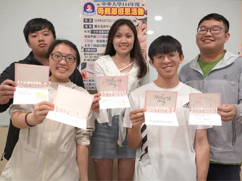 母親節即將到來,中華大學學子們今年特地親手製作感謝卡片,不僅要獻給家中母親,更藉此向辛勤教導與陪伴他們的老師,以及在校園服務的郵局與學餐阿姨等服務人員表達感謝。感謝這群偉大的「校園媽媽」長期默默守護著學生的學習與生活,並以實際行動展現愛與關懷!