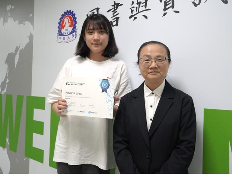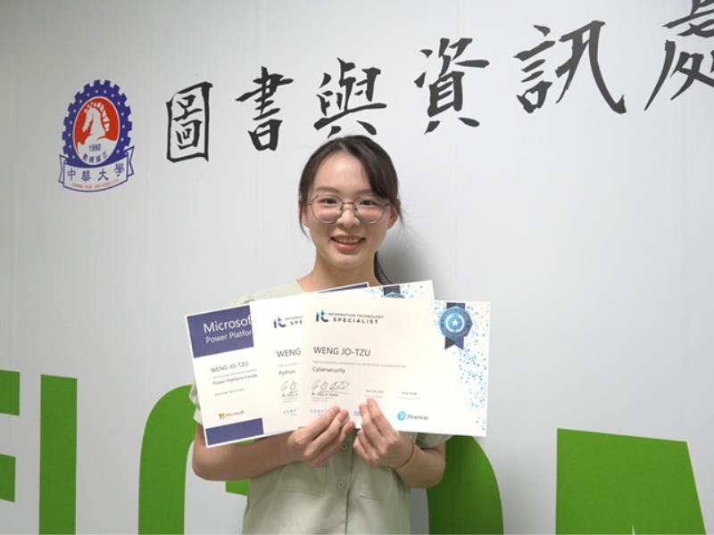 圖/中華大學資訊工程學系大三生翁若慈,一次考取「Cyber security」、「Microsoft PL900」,以及「ITS Python」國際證照,期望能藉由提升自我能力,獲得知名科技公司的實習門票。