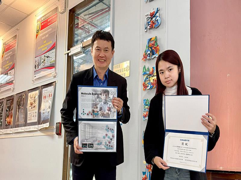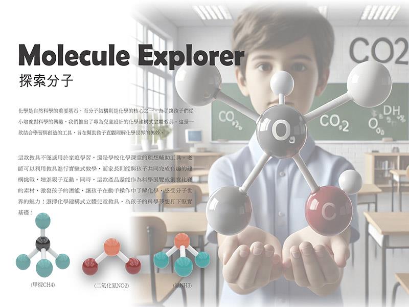 亞洲大學創意商品設計系黃品瑜同學,參加「2025奇.想設計大賽」,在全台50多所大學、721件參賽作品中脫穎而出,以獨具巧思的化學建構式立體兒童教具設計作品「Molecule Explorer 探索分子」,獲「美化人生組」佳作。