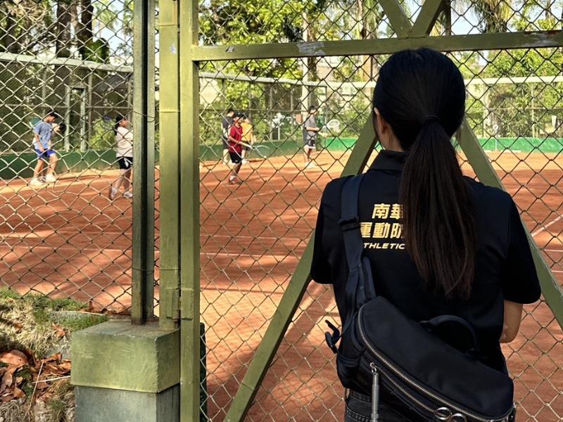 南華大學運動學程學生組成的運動防護團隊執行嘉義縣大林國中軟式網球隊的隨隊防護工作,於賽場旁盯場,擔任選手的最佳後援。
