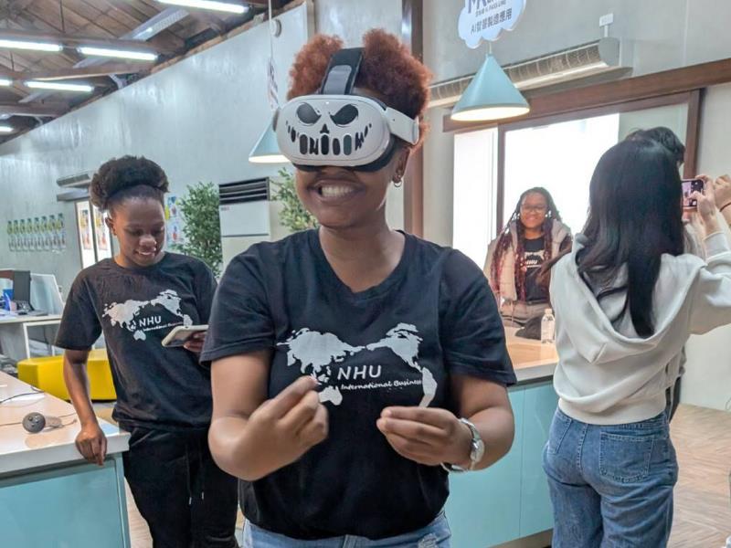 南華大學國企學程參訪嘉義文化科技創新基地,國際生體驗VR XR科技應用。
