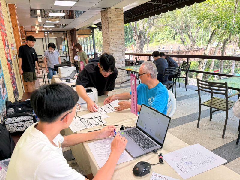 值得一提的是,本次活動也提供嘉大體育系學生實際參與之機會。由體育與健康休閒學系師生運用專業儀器協助教職員工進行自我體態檢測,內容包含InBody身體組成分析與步態穩定性評估,幫助教職員工深入了解自我體脂肪、肌肉量及水分比例等數值,並觀察行走時的穩定度與步態模式,預防肌少症及跌倒風險,提升健康意識。