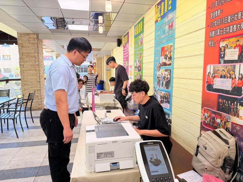 圖1:嘉大今天(14日)於沁心池邊舉辦InBody檢測與步態健檢活動。
