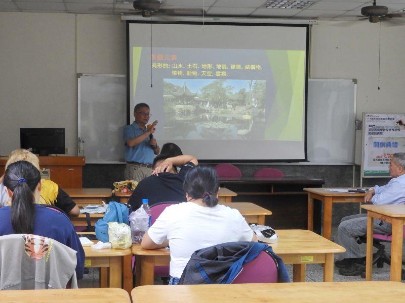 圖1: 陳士?老師開課首堂講授「景觀元素」。