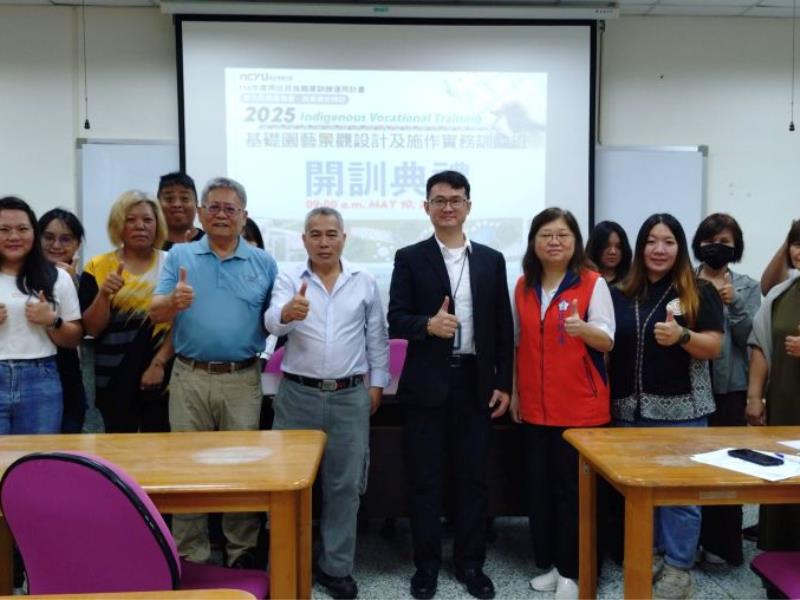 在原住民族委員會及嘉義市政府的指導下,由嘉義大學產學營運及推廣處主辦「114年度原住民族職業訓練運用計畫-基礎園藝景觀設計及施作實務訓練班」,日前於嘉大林森校區正式開訓。開訓典禮由產學營運及推廣處詹昆衛處長主持,原住民族委員會雲嘉南區就業服務辦公室田曉芬專員及嘉義市政府民政處李羿瑩科員親臨指導,現場氣氛熱烈。