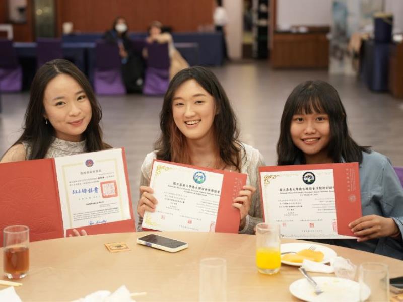 活動中,僑生畢業代表張馨璟分享她在臺四年的求學經歷,並表示父母特地從馬來西亞來臺參加她的送舊晚會與畢業典禮,讓她格外感動。她談到曾因騎車受傷不敢讓家人擔心,這些經歷讓她變得更堅強與獨立。來自泰國的外籍生李娜樂也分享自己因家人的全力支持,得以安心完成在嘉大的學業,場面溫馨感人。