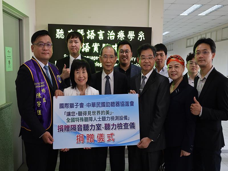 鑑於台灣聽語人力不足、就業市場需求大,中華民國助聽器同業聯合協進會、國際獅子會300A1區共同捐贈價值百萬級的聽力室和聽力檢查儀式給亞洲大學聽力暨語言治療系,提供系上老師作為高齡者、特殊族群的聽覺健康照護教學及研究,同學也能使用儀器累績實務學習經驗,成為未來聽覺照護產業人才。