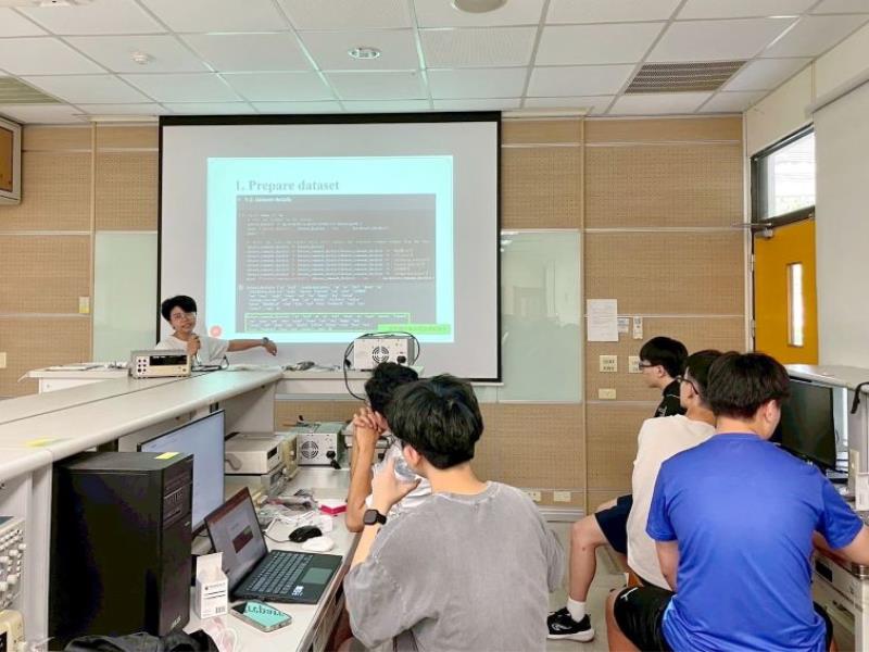 圖1:資工系博士生林桂梅協助語音辨認實驗教學。