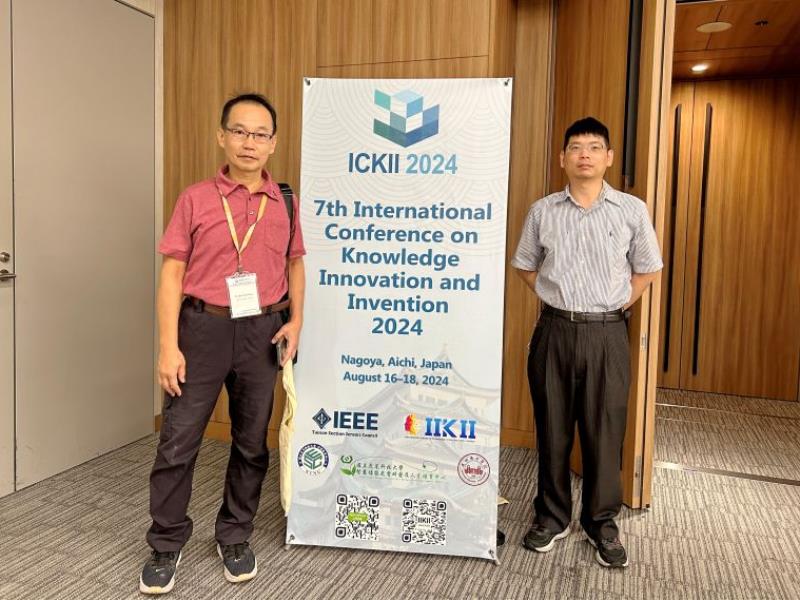 圖3:資工系博士生周奕(右)與指導教授章定遠教授(左)赴日本愛知縣名古屋參加2024 ICKII學術會議合影。